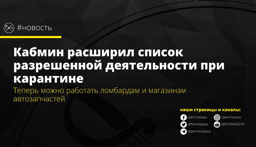Кабинет министров расширил список видов хозяйственной деятельности, разрешенной во время карантина. Теперь разрешено: