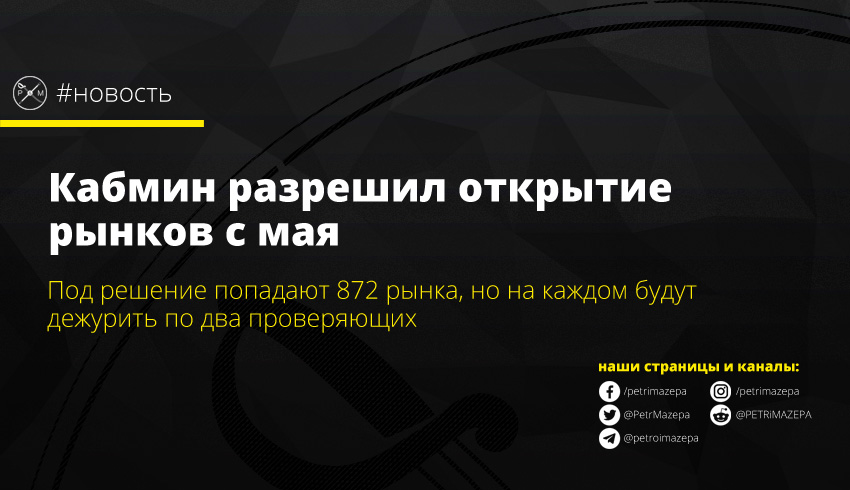 В своем Telegram-канале премьер-министр Денис Шмыгаль написал, что открытие рынков «должно регламентироваться четкими санитарными нормами». И сегодня Кабмин поддержал такие критерии, разработанные Минздравом и Минэкономики.