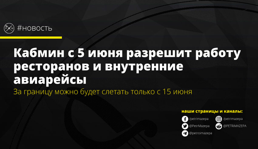 Кабмин с 5 июня разрешит работу ресторанов и внутренние авиарейсы