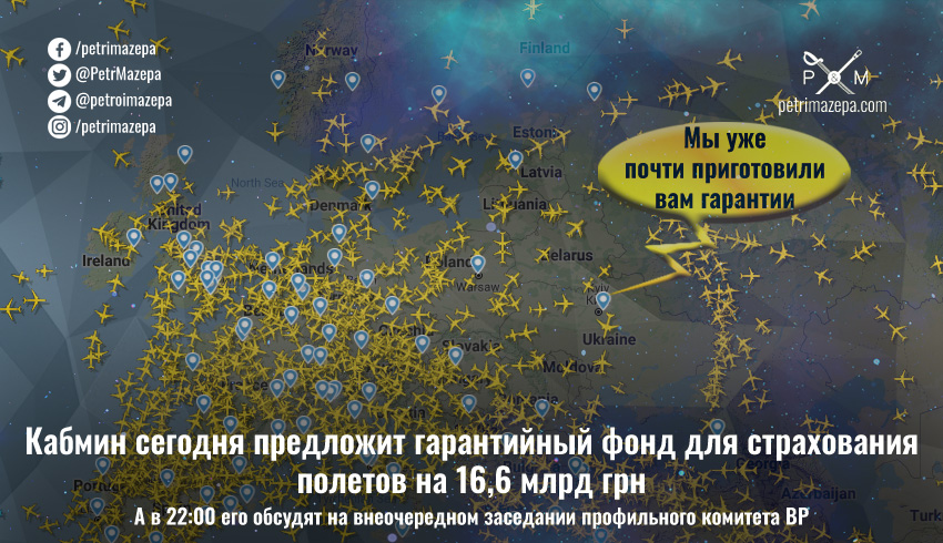 Кабмин сегодня предложит гарантийный фонд для страхования полетов на 16,6 млрд грн