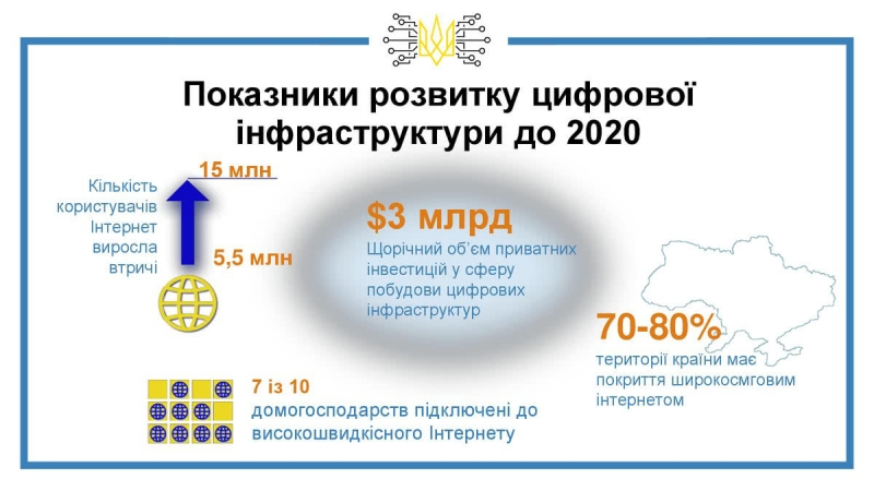 Правительство планирует, что уже до 2020 года больше 70-80% территории Украины будет покрыто широкополосным скоростным интернетом.
