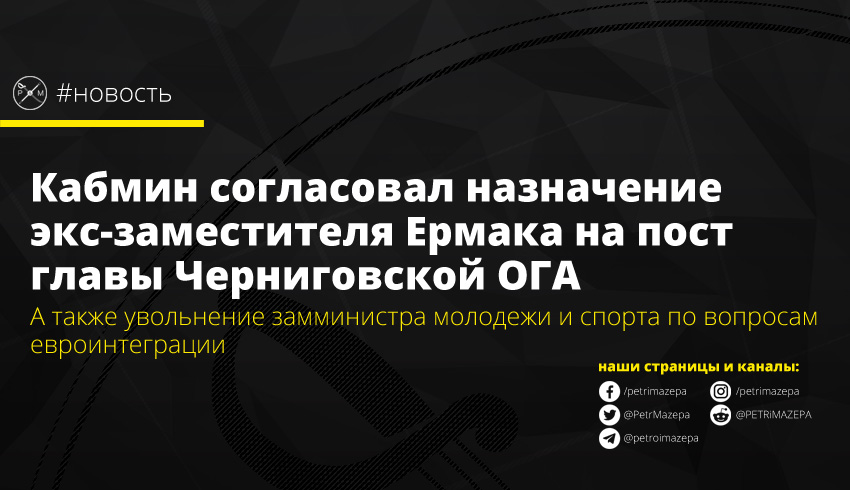 Кабмин согласовал назначение экс-заместителя Ермака на пост главы Черниговской ОГА