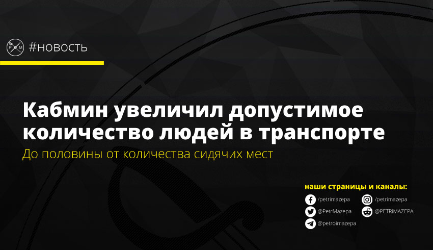 Кабинет министров увеличил допустимое количество людей в транспорте – до половины мест для сидения, но теперь пассажиры обязаны быть в средствах индивидуальной защиты.