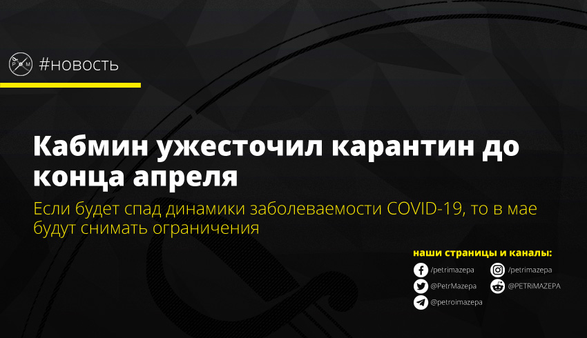 - Первого апреля на сайте Кабинета министров появился анонс ужесточения мер по борьбе с распространением коронавирусной инфекции. На период карантина до 24 апреля 2020 года планируют наказывать за посещение парков, прибрежных зон, нахождение на улице без маски и группами более двух человек.