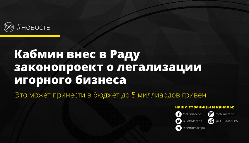 Кабинет министров Украины внес в Верховную Раду законопроект о легализации игорного бизнеса №2285.