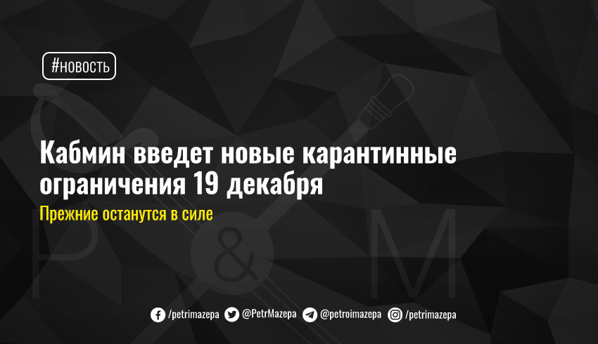 Кабинет министров опубликовал список новых карантинных ограничений, которые начнут действовать с 19 декабря.
