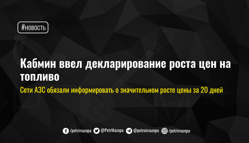 Кабинет министров признал бензин марок А-92 и А-95, и дизельное топливо социально значимыми товарами и ввел декларирование роста цен на топливо. Сети АЗС обязали информировать о значительном росте цены за 20 дней. Таким образом, в Кабмине хотят стабилизировать цены на топливо.
