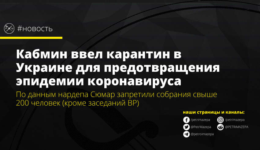 Кабмин ввел карантин в Украине для предотвращения эпидемии коронавируса