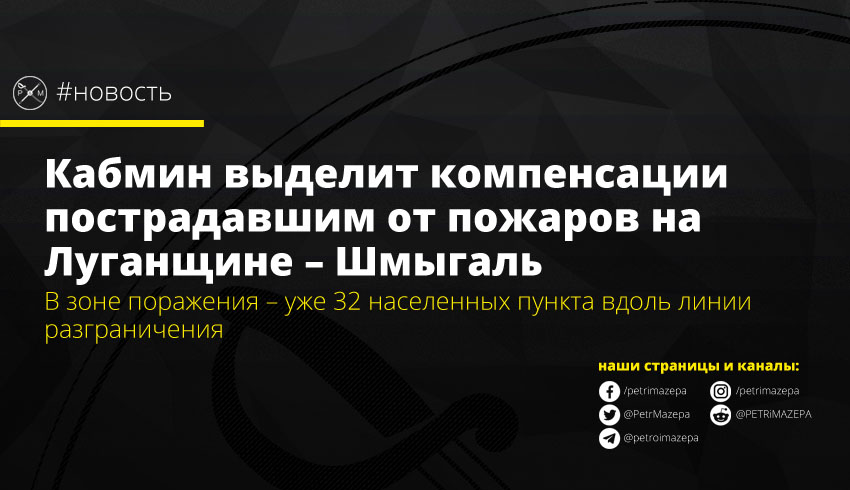 Кабинет министров выделит компенсации пострадавшим от пожаров в Луганской области. Об этом заявил премьер-министр Денис Шмыгаль во время брифинга, пишет Hromadske.