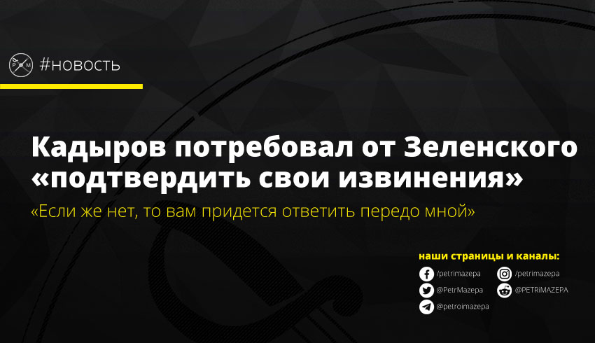 Президент Чеченской республики РФ Рамзан Кадыров потребовал от Президента Украины Владимира Зеленского «подтвердить свои извинения», прозвучавшие несколько лет назад после юмористического шоу. Он также заявил, что если Зеленский не сможет «твердо определиться со своей позицией», то ему «придется ответить» перед Кадыровым.