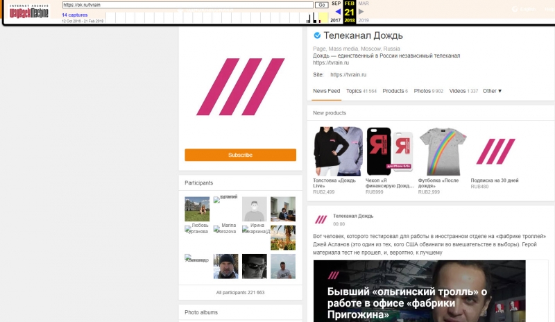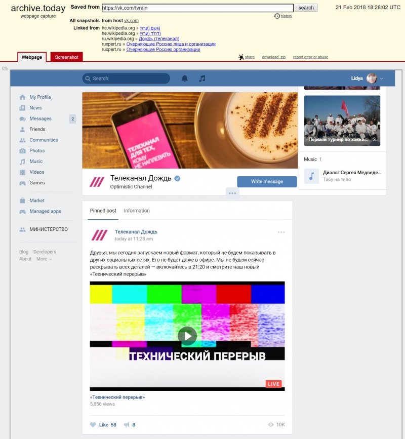 В примерах ниже нажмите на гиперссылку на каждую из социальных сетей, чтобы просмотреть сохранённую страницу на Archive.today.