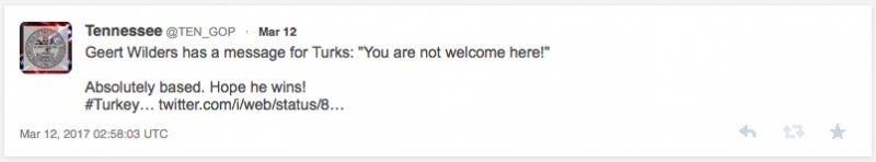Особого внимания заслуживает ещё один аспект деятельности @TEN_GOP, а именно — внешняя политика. Он публиковал как исламофобские, так и произраильские посты, и пытался взаимодействовать с лидерами ультраправых по всей Европе.