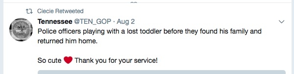 Он писал и просто сентиментальные твиты. Так, в этом посте он хвалит американских полицейских, которые вернули домой потерявшегося ребёнка.