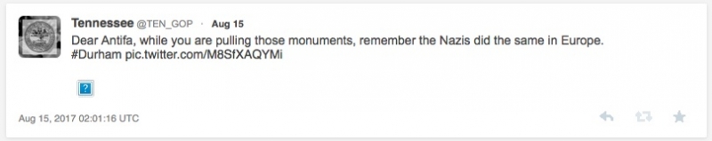 В 2017 году @TEN_GOP ополчился против «Антифа» — так ультраправые называют как агрессивных ультралевых активистов, так и других протестующих.