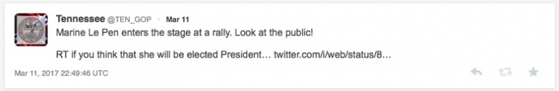 В чём же секрет успеха @TEN_GOP? Твиты этого аккаунта были удалены после его блокировки, однако сохранилось несколько архивов. В крупнейшем из них есть более 3000 твитов c 20 декабря 2016 года. Этим архивом поделилась с @DFRLab команда PropOrNot, которая занимается отслеживанием российской пропаганды и 20 декабря установила, что этот аккаунт российский.