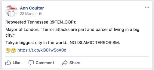 Его враждебные к мусульманам посты содержали цитаты других ультраправых. Таким образом он повторял свою успешную методику мимикрии в онлайн-сообществе. В частности, он делился сообщениями как американцев…