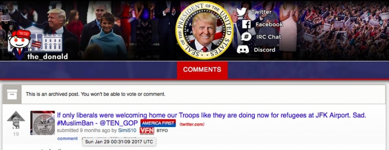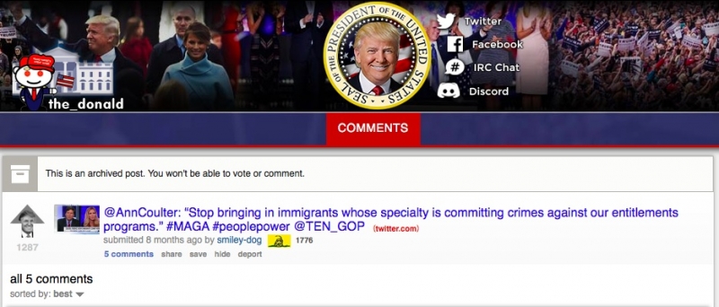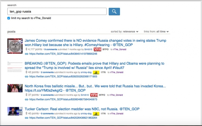 Твиты @TEN_GOP о России неоднократно репостили на Reddit. Так его сообщения попадали в ультраправое сообщество.