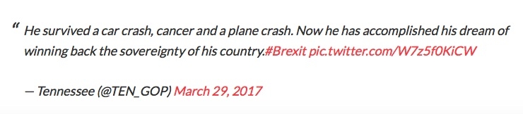 @TEN_GOP также рассыпался в похвалах героям европейских ультраправых, например, кандидатке в президенты Франции Марин Ле Пен, голландскому политику Герту Вилдерсу и британскому стороннику выхода из ЕС, депутату Европарламента Найджелу Фараджу.