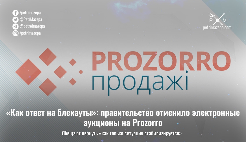 В Кабинете министров сообщили, что «из-за постоянных обстрелов со стороны россии объектов энергетической инфраструктуры не все участники торгов в системе электронных закупок Prozorro имеют возможность участвовать в электронных аукционах». Поэтому эти аукционы временно упраздняются, а вместо них будут проводиться обычные торги без аукциона.