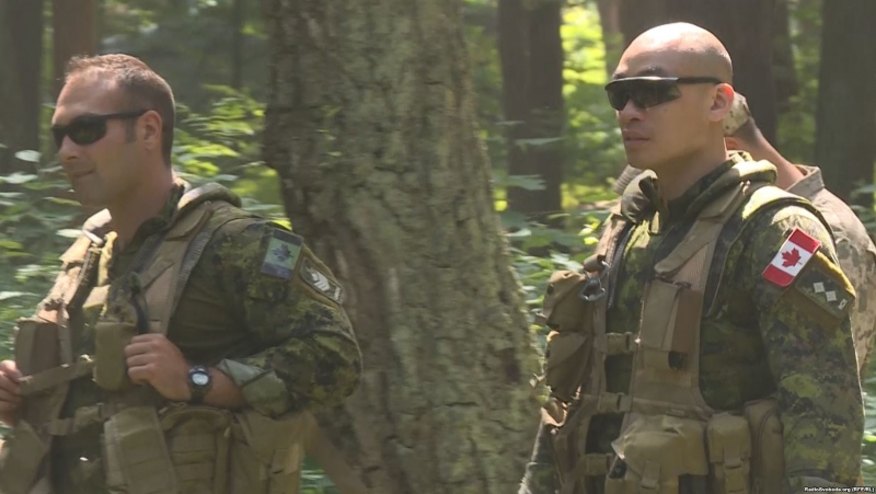 Інструктори Збройних сил Канади навчають солдатів уже три роки. Журналісти програми «Донбас.Реалії» потрапили на полігон у момент відпрацювання тактики в лісистій місцевості. Таке завдання українським солдатам поставили канадські інструктори. Одне із завдань – патрулювання лісової дороги, на якій умовний противник нібито підготував засідку.