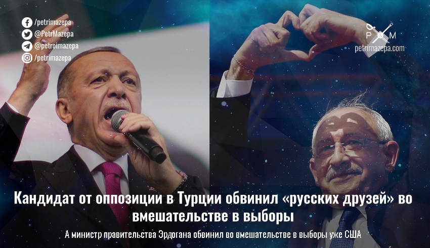 Кандидат на выборах президента Турции от объединенной оппозиции, главный конкурент действующего президента Кемаль Кылычдароглу обвинил россиян в попытках вмешательства в выборы. Об этом он заявил в Twitter в том числе и на русском языке.