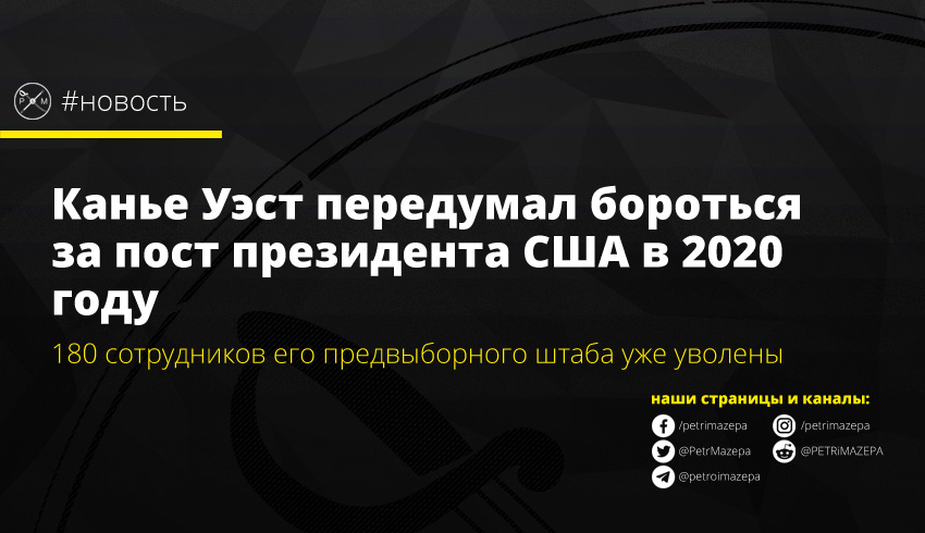 Через 10 дней после того, как рэпер Канье Уэст заявил о своих амбициях на пост президента США, его предвыборная кампания де факто прекращена. А сам исполнитель уже не планирует участвовать в предвыборной гонке в 2020 году.