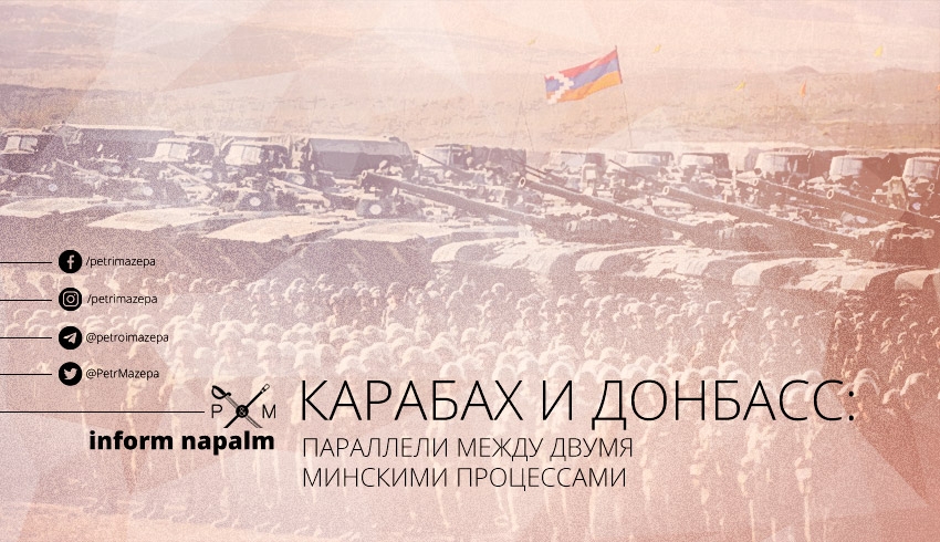 Примечание редакции. В нашем обществе принято забывать темы, актуальные пару-тройку лет назад — и лишь потом, спустя некоторое время, удивляться их актуализации. Это можно назвать смесью пословиц «жареный петух клюнет» и «снаряд дважды в одну воронку... всё же падает». Так что мы приняли волевое решение опубликовать не баян, а классику (текст 2016 года). Ведь вопрос Нагорного Карабаха снова актуален, а потому и об общих моментах с ОРДЛО напомнить следует прямо сейчас. Вдруг через месяц придется удивляться.