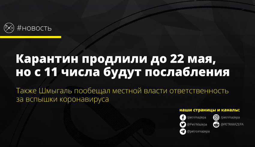Премьер-министр Украины Денис Шмыгаль, открывая заседание Кабмина в понедельник, 4 мая, сообщил, что стабильная ситуация с заболеваемостью позволяет с 11 мая начать снятие первых ограничений и перейти к концепции адаптивного карантина. Говоря про адаптивные ограничения карантина Шамыгаль затронул тему ответственности местной власти за вспышки коронавируса в их регионах.