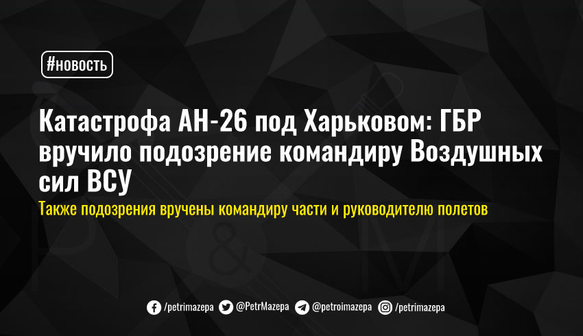 Государственное бюро расследований объявило о подозрении по делу катастрофы АН-26 с курсантами на Харьковщине – лицам, которые причастны к организации полетов и «совершили нарушения в своей трудовой деятельности», в том числе командиру Воздушных сил ВСУ.