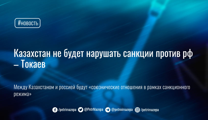 Президент Казахстана Касым-Жомарт Токаев заявил, что его страна не будет нарушать санкции против рф, чтобы не подпасть под вторичные санкции.