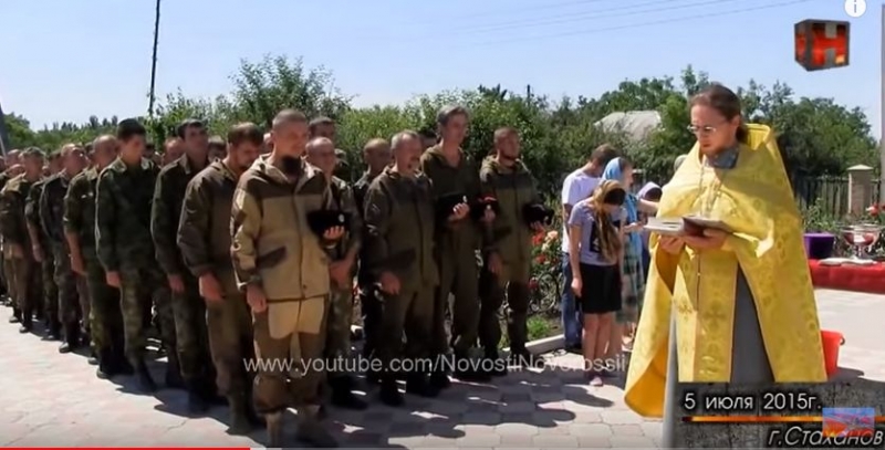 6-й отдельный мотострелковый казачий полк им.атамана Матвея Платова отличался крайней норовистостью. Его руководитель Павел Дрёмов неоднократно вступал в стычки с Игорем Плотницким и долго сопротивлялся «коллективизации», однако после гибели «Бэтмена»-Беднова его полк вынужден был влиться во 2-й Армейский корпус «народной милиции ЛНР». Как известно, это не спасло Дрёмова от ликвидации. История полка начинается в Антраците, потом «дрёмовцев» носило между Северодонецком, Лисичанском и Рубежным, наконец, полк выбрал своей базой Стаханов. Именно там его и «обслуживали» местные священники, принимая присяги и освящая знамёна.