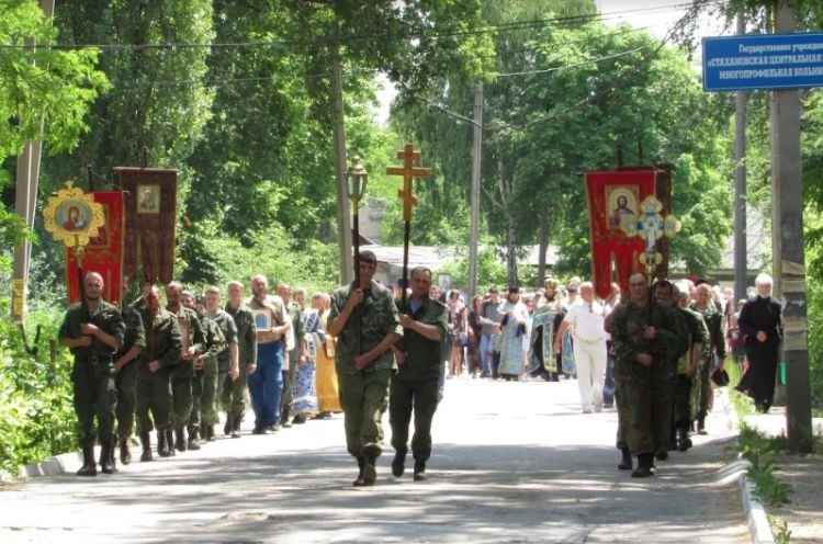 А в храме Святого Духа г. Ирмино 04.11.2016 г. казаки «Станицы Шубинской» отмечали день народного единства России и «молились Господу и Богородице, прося их ниспослать земле нашей мира, а воинству нашему — победы над злым врагом, сатанинскими ордами еретиков-нацистов». Богослужение возглавлял некий протоиерей Антоний.