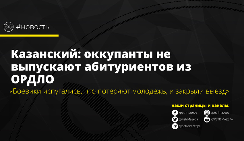 Журналист и представитель Донецкой области в ТКГ Денис Казанский рассказал, что получает от молодых людей из ОРДЛО сообщения о том, что им не разрешают покидать оккупированные территории Донбасса, чтобы подать документы в вузы на подконтрольную территорию.