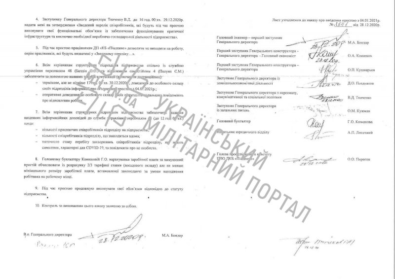 На время простоя сотрудникам будут выплачивать 2/3 ставки, но не меньше минимальной зарплаты. Простой предприятия продлится до издания отдельного приказа о возобновлении работы, сообщает Украинский милитарный портал.