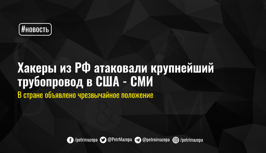 В США группировка хакеров DarkSide атаковала крупнейший в стране нефтепровод Colonial Pipeline – с пятницы работу трубопровода еще не удалось восстановить. Правительство США ввело чрезвычайное положение, чтобы не допустить дефицита топлива. По данным СМИ, за атакой стоят хакеры из РФ.