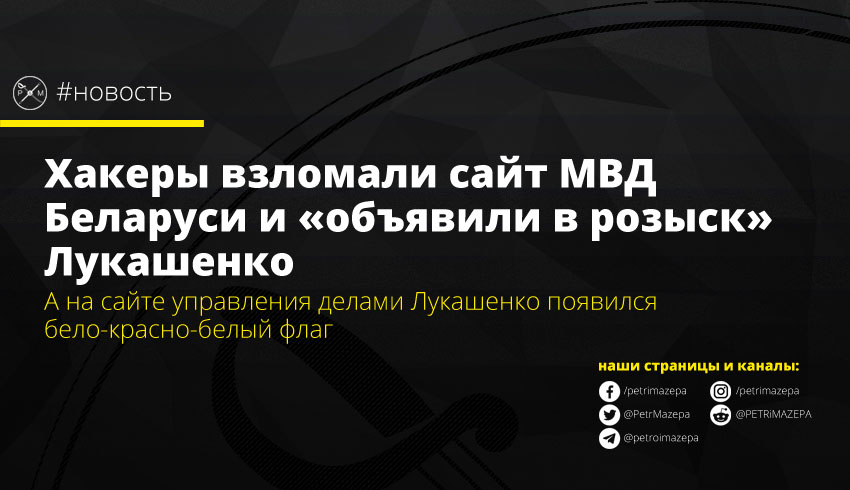 Хакеры взломали сайт Министерства внутренних дел Беларуси и опубликовали на нем объявление о розыске исполняющего обязанности президента Александра Лукашенко и главы МВД Беларуси Юрия Караева. Восстановить работоспособность ресурса властям Беларуси до сих пор не удалось.