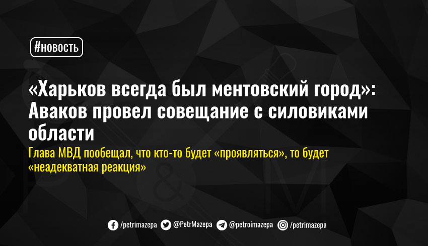«Харьков всегда был ментовский город, как говорили. Это говорилось… что здесь единый кулак власти всегда был сильнее альтернативного кулака. Никакие националисты, никакие бандюки, никакие так сказать боковые авторитеты не будут здесь ничего решать и править. Более того, я буду этим заниматься специально сам. Если кто-то будет соответствующим образом проявляться, или на что-то даже претендовать, будет демонстративная, неадекватная, несимметричная реакция», - сообщил он на совещании, видео с которого официально обнародовали на Youtube-канале МВД.