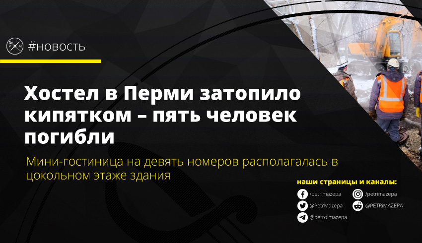 В Перми (РФ) в ночь на 20 января прорвало трубу с кипятком в одной из местных мини-гостиниц на улице Советской Армии. В хостеле было девять номеров и ЧП привело к смерти пяти человек, а еще шестеро получили ожоги разной степени тяжести.