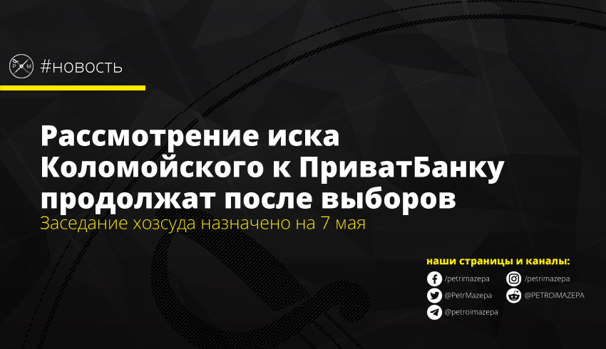 Следующее заседание суда, по делу «ПриватБанка» состоится во вторник 7 мая в 11:00, сообщает «РБК-Украина». Согласно материалам дела, Коломойский и подконтрольная ему компания TRIANTAL INVESTMENTS LTD просят признать недействительным договор купли-продажи акций «ПриватБанка».