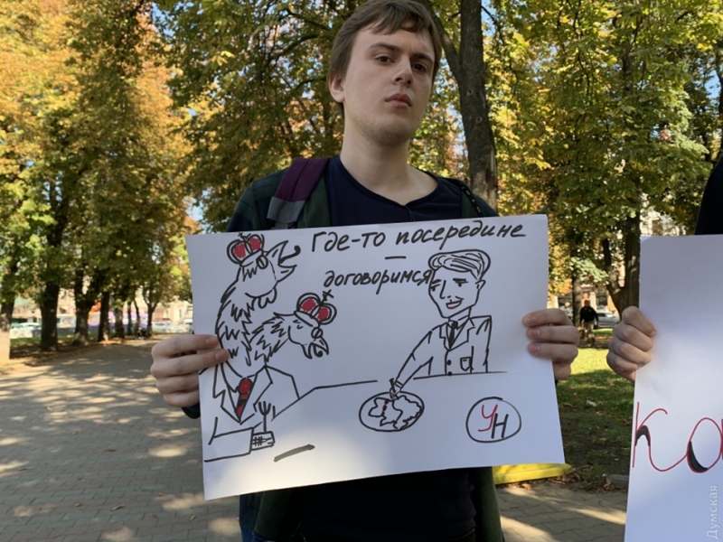 «Зеленский, вернись в «Квартал», ты уже всех нас *достал прим. ред.*» — с такими красноречивыми плакатами выходили на акции протеста люди в Одессе. Участники собрались на Соборной площади и прошли до памятника Дюку.
