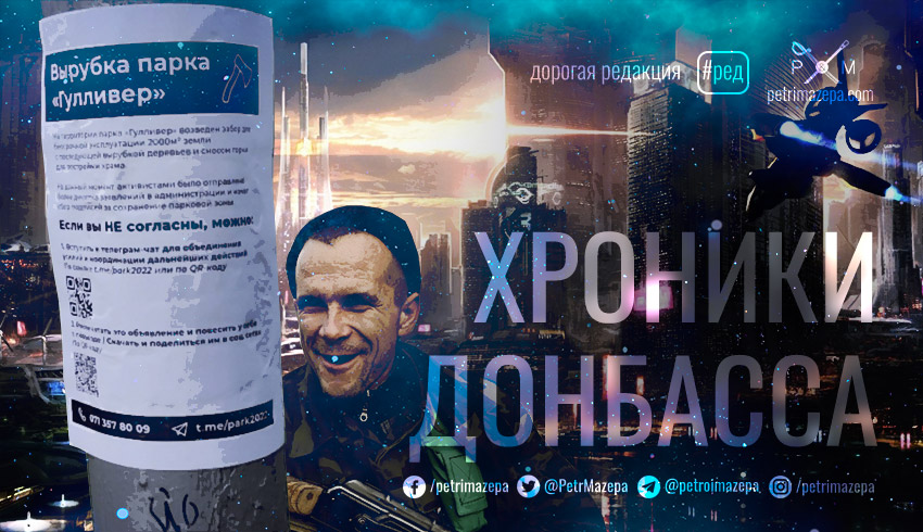 Знаем, надо уделить пару строк борьбе жителей Донецка за парк «Гулливер». Ведь им есть чем похвастать: вы только посмотрите, как решительно они написали что-то краской на асфальте. Так держать, ребята, победа близка как никогда.