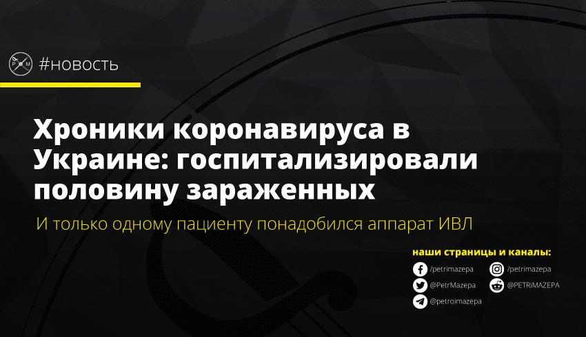На брифинге заместитель министра здравоохранения Украины, главный государственный санитарный врач Украины Виктор Ляшко сообщил, что из 804 случаев заболевания коронавирусной инфекции в Украине в учреждения здравоохранения были госпитализированы почти 50% больных. А одного из госпитализированных подключили к аппарату ИВЛ.