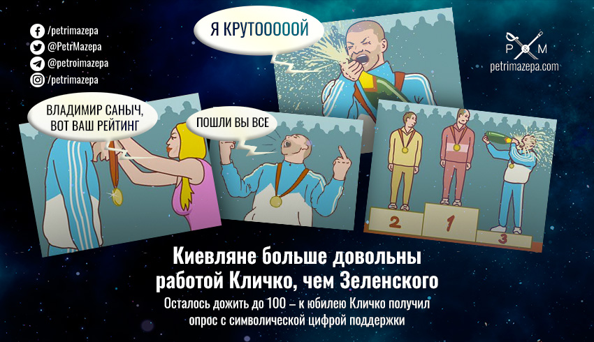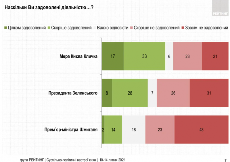 19 июля социологическая группа «Рейтинг» опубликовала результаты опроса, который проводился 10-14 июля среди жителей Киева. Как оказалось, количество киевлян, которые довольны работой своего городского головы почти в 1,5 раза превышает количество тех, кто доволен работой своего президента.