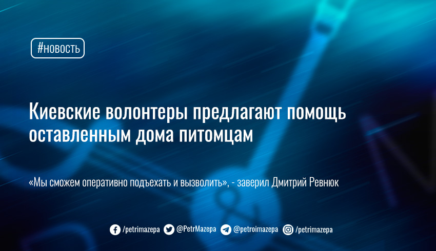 «Друзья, люди в панике убегали из Киева и оставляли домашних животных, мы сможем оперативно подъехать и вызволить», - написал в Facebook Дмитрий Ревнюк.
