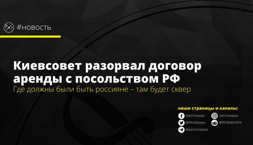 Киевский городской совет разорвал договоры аренды земельных участков с посольством России в Украине. Ранее планировалось что на этих участках будут построены новые помещения посольства Российской Федерации, теперь же горсовет принял решение предоставить участкам статус сквера.