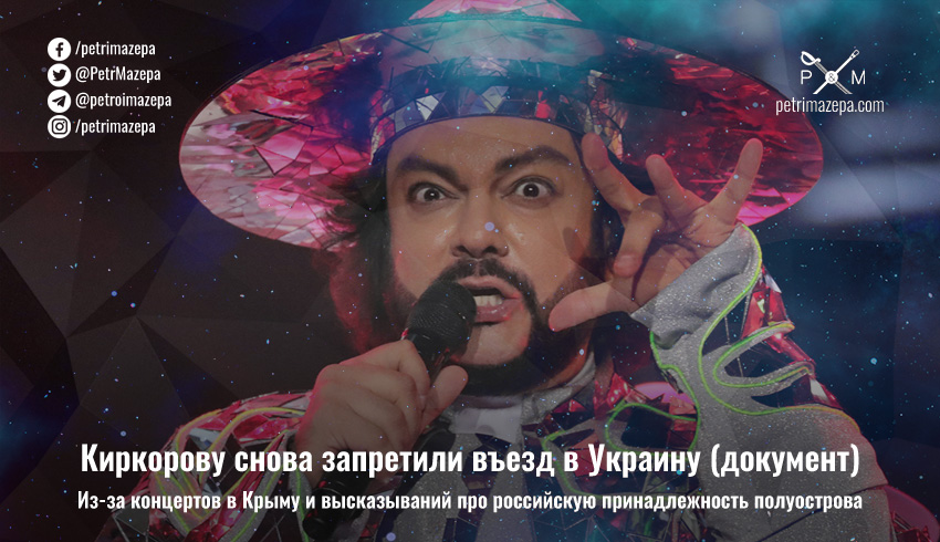 Причиной для обращения послужили «концерты Филиппа Киркорова в украденном Россией Крыму» и высказывания артиста о том «что Крым - российский в 2017 году», - написал Стефаник.
