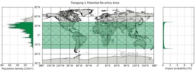 Скорее всего, Тяньгун-1 большей частью сгорит в атмосфере, но часть особо крупных и прочных обломков, таких как топливные баки и элементы двигателей, могут не сгореть до конца и упасть на Землю. При приближении к поверхности китайская станция массой 8,5 тонн может развить скорость до 26 тысяч км/час. Предсказать что-то точнее ученые не могут, поскольку китайские специалисты не раскрывают модель станции, которая сейчас летит к Земле.