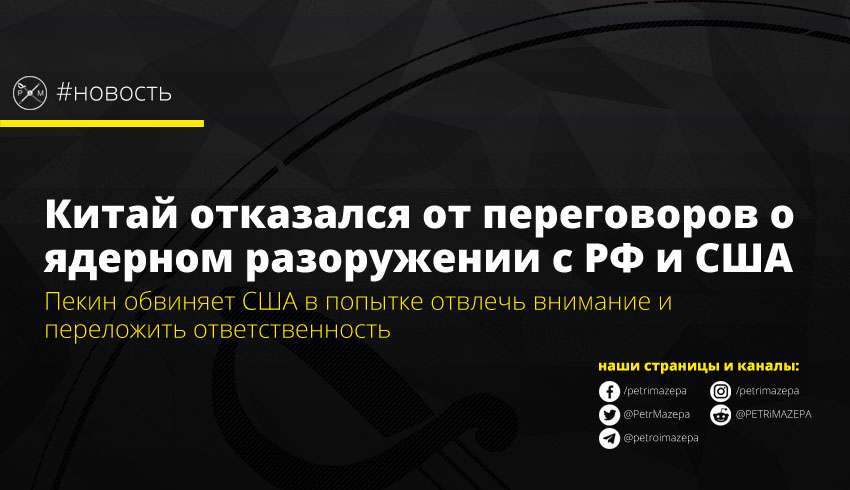 Китай отказался принимать участие в переговорах по ядерному разоружению с РФ и США. МИД КНР отметил, что Пекин неоднократно давал понять, что принимать участие в переговорах не намерен, а США приглашением Китая на переговорную площадку возможно пытаются переложить ответственность и отвлечь внимание от своего выхода из соглашений по контролю вооружения.