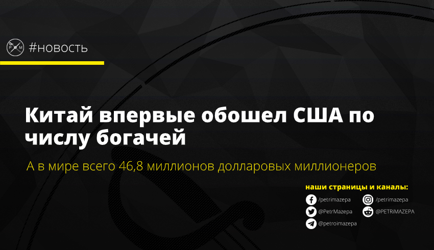 Среди 10% самых богатых жителей мира впервые оказалось больше жителей Китая, чем США. Однако по числу миллионеров американцы все еще лидируют.