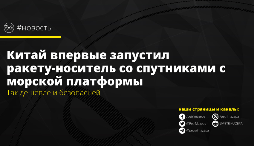 В Китае с мобильной платформы в Желтом море провели успешный запуск ракеты-носителя со спутниками. Это первый космический запуск, проведенный КНР с морской платформы, и 306-я миссия серии ракет-носителей Long March.